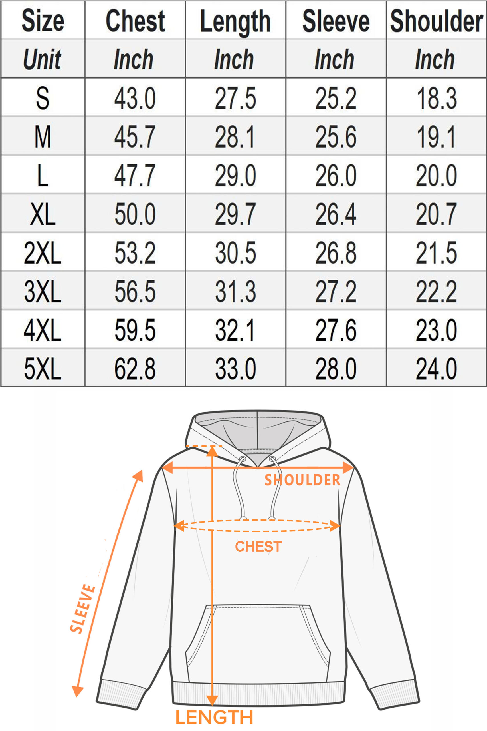 Size apply to Quarter-Zip Hoodie
